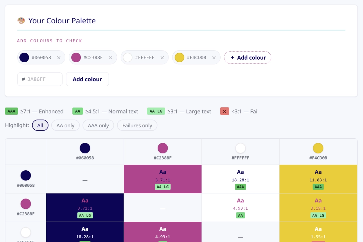 Colour contrast is one of the most common accessibility failures on the web. According to the 2025 WebAIM Million report, low contrast text appeared on …