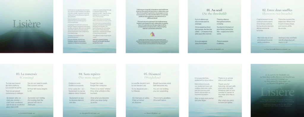 Suno AI (music) · Claude (poetry, packaging guidance) · Adobe InDesign (booklet) · DaVinci Resolve (video) · Stock video footage
