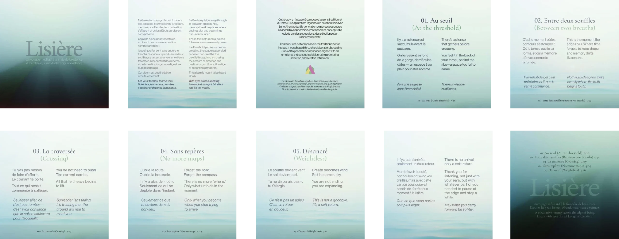 Lisière grew out of a personal loss, but it isn’t about grief. It’s about the journey itself. Five pieces that imagine the passage from existence into the unknown, from the inside out.