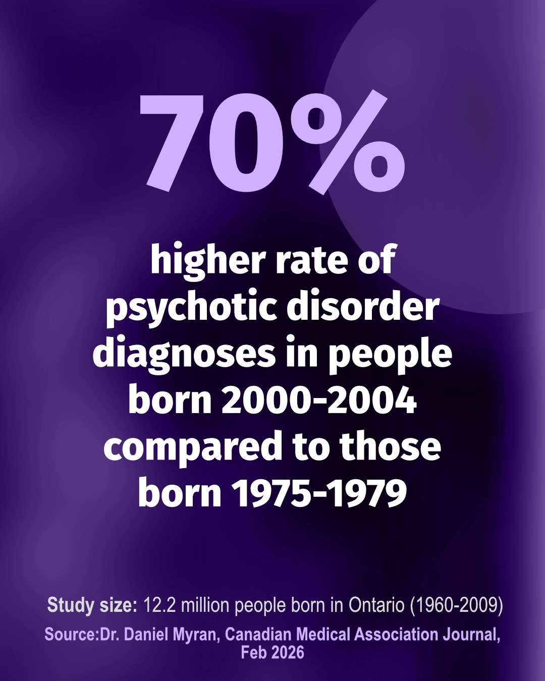 70% higher rate of psychotic disorder diagnoses in people born 2000-2004 compared to those born 1975-1979Side 2: