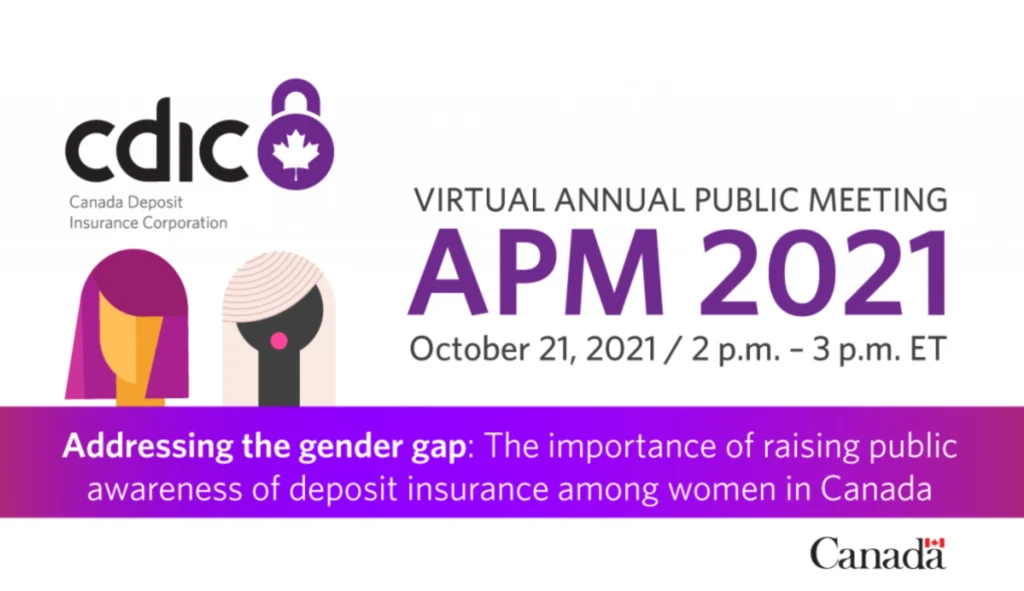 Social image promoting CDIC’s Virtual Annual Public Meeting. The creative highlights the theme “Addressing the gender gap” raising public awareness of deposit insurance among women in Canada.